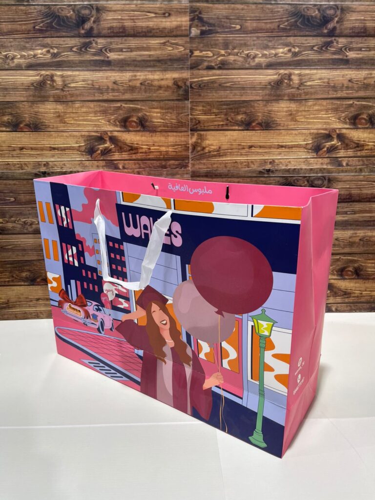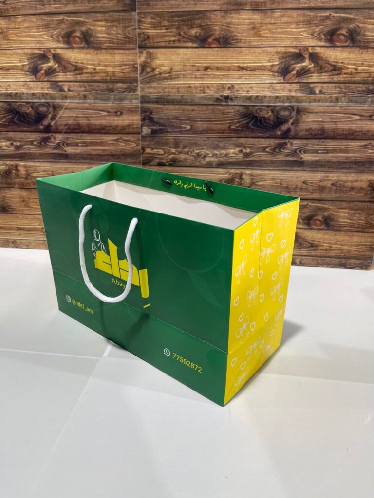 اكياس ورقية دعائية مطبوعة حسب طلبك اختار التصميم واحنا ننفذ مطبوعة بجودة عالية وأحجام متعددة تناسب كل الاستخدامات.